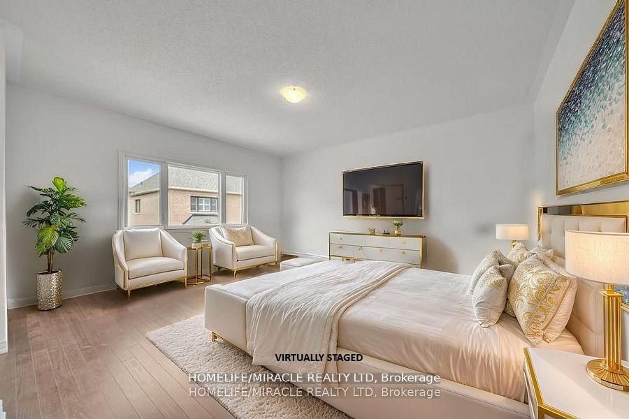 Absolutely Stunning, Brand New, Never-Lived-In Detached Home in One of Milton's Most Desirable Communities! This Premium 45 Ft Lot Boasts 3400 Sq Ft of Thoughtfully Designed Living Space Featuring 4 Spacious Bedrooms plus Den, 3.5 Bathrooms, and a Versatile Loft That Can Be Converted Into a 5th Bedroom or Home Office. Enjoy 9-Foot Ceilings on Both Floors, Separate Living and Dining Areas, and a Bright, Open-Concept Family Room Perfect for Entertaining. The Gourmet Kitchen is Equipped with Built-In Stainless Steel Appliances and Elegant Quartz Countertops. The Primary Suite Offers His and Her Walk-In Closets and a Luxurious Ensuite. An Additional Bedroom Also Includes a Walk-In Closet for Added Convenience. Premium Hardwood Flooring Throughout No Carpet in the Entire Home. Main Floor Laundry and Builder-Finished Side Entrance Provide Excellent Future Potential for a Basement Apartment or In-Law Suite. No Sidewalk Park Up to 4 Cars on the Driveway Plus 2 in the Garage. Surrounded by Upscale Homes and Located Close to Top-Rated Schools, Parks, Milton GO, Sherwood Community Centre, Hospital, Shopping, and Easy Access to Hwy 401 & 407. This Home Truly Combines Luxury, Space, and Location A Must See!