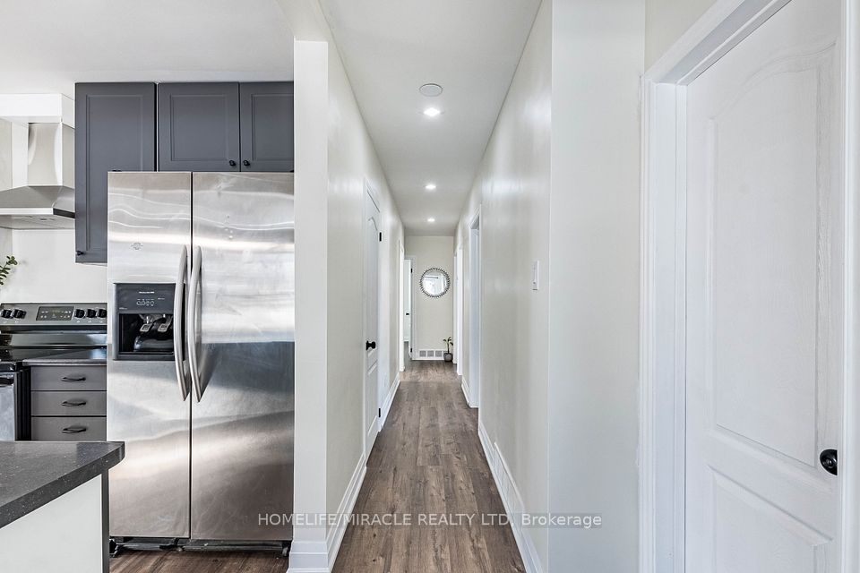 Welcome to 36 McLaughlin Road N, a well-maintained one-storey detached raised bungalow on a huge pie-shaped lot, offering exceptional potential for homeowners, investors, and developers alike. This solid 4+3 bedroom, 2+2 bathroom home features a bright, functional layout with a separate entrance to the lower level, making it ideal for rental income or an in-law suite. The basement boasts extra-high ceilings, adding flexibility and long-term value. The property also presents an excellent opportunity for infill redevelopment or long-term investment (buyer to verify). Numerous major upgrades provide peace of mind, including roof (2015), kitchen cabinets (2022), one upper bathroom and two basement bathrooms (2022), kitchen countertops (2026), windows (2026), fresh paint (2026), garage door (2026), and vinyl flooring throughout (2026).Additional highlights include a tenanted basement generating potential income, ample parking, and approximately 14 feet of side yard space, offering the possibility for additional parking or a workshop. Ideally located just minutes from Brampton GO Station, downtown Brampton, shopping plazas, transit, schools, parks, and major commuter routes, and situated directly on a major bus route, this home delivers outstanding convenience and long-term value. Whether you're looking for a solid family home, strong income potential, or a future development opportunity, this is a rare find with massive upside. Investor's dream-don't miss it!