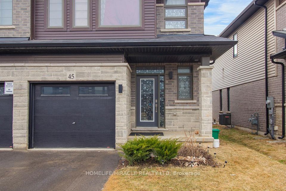 Welcome to 45 June Callwood Way, a luxurious end-unit townhouse located in the West End of Brantford. This home features modern curb appeal and loads of upgrades, offering 3 bedrooms, 2.5 bathrooms and a single car garage. Step inside to find freshly painted interiors and elegant flooring flowing seamlessly through the main level. The open concept main floor plan is perfect for entertaining families and friends. The kitchen offers modern cabinetry, countertops, an island and stainless-steel appliances. The main floor is complete with a conveniently placed powder room. Upstairs the spacious primary bedroom has a walk-in closet. This floor offers 2 additional bedrooms, a full bathroom and upper floor laundry for convenience.